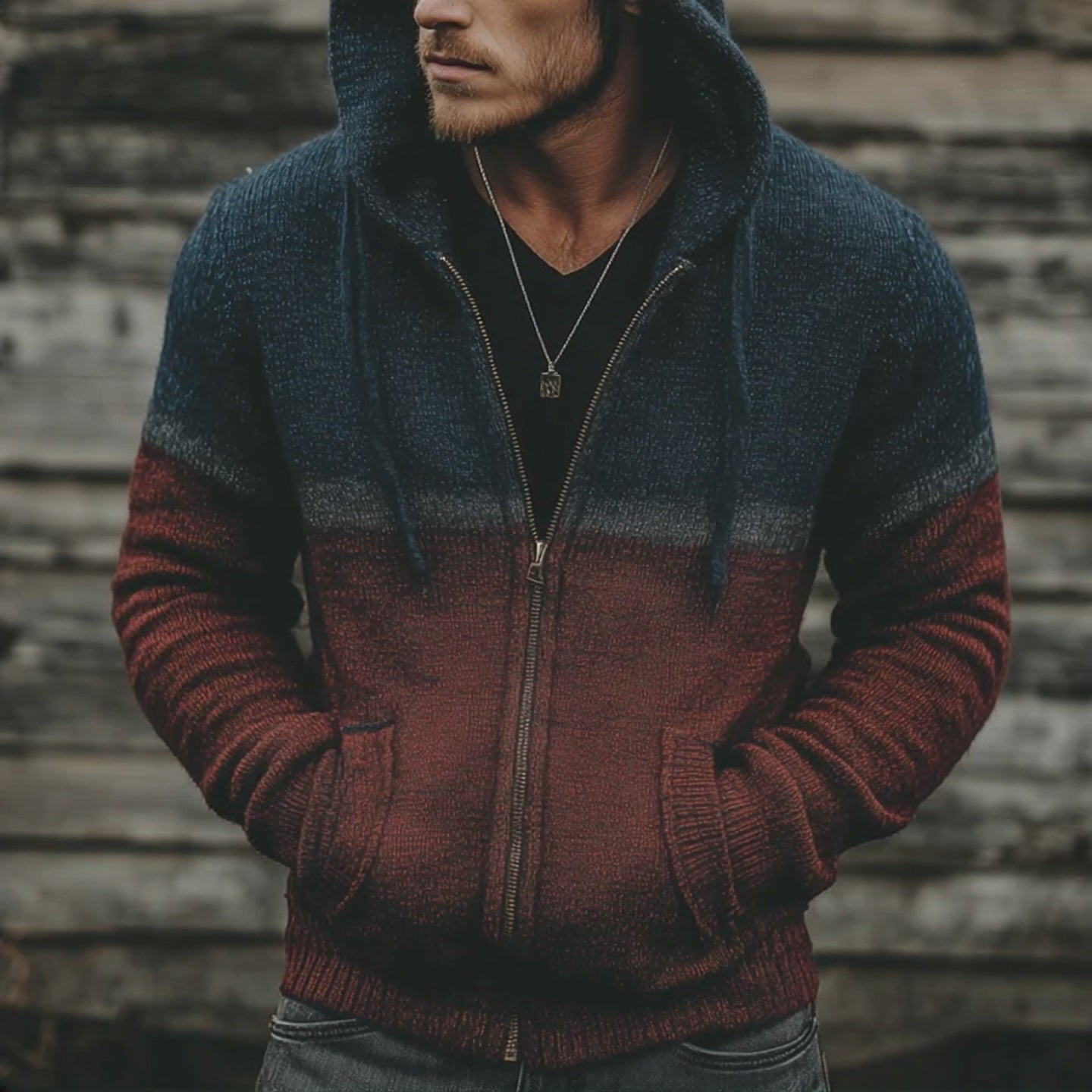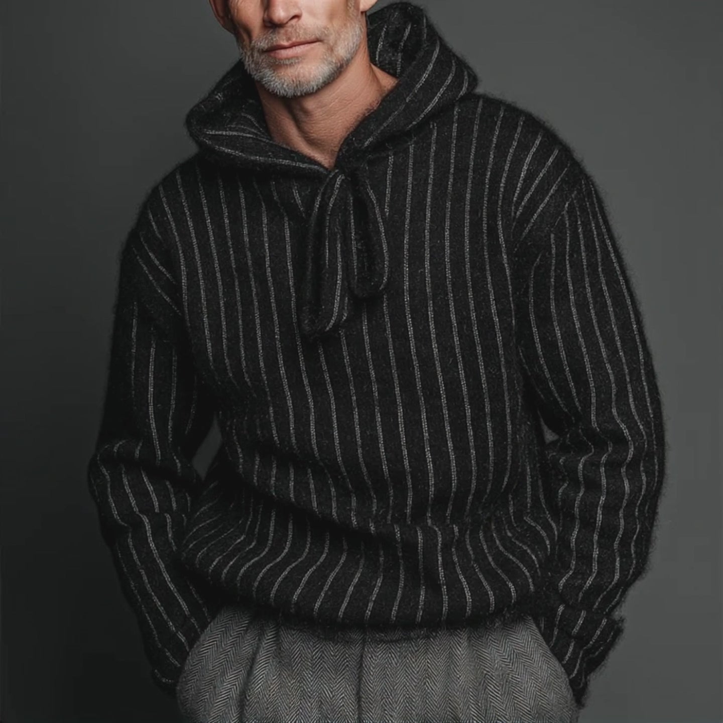 Men's Retro Casual Knitted Striped Hooded Sweater MTA1480J7TO