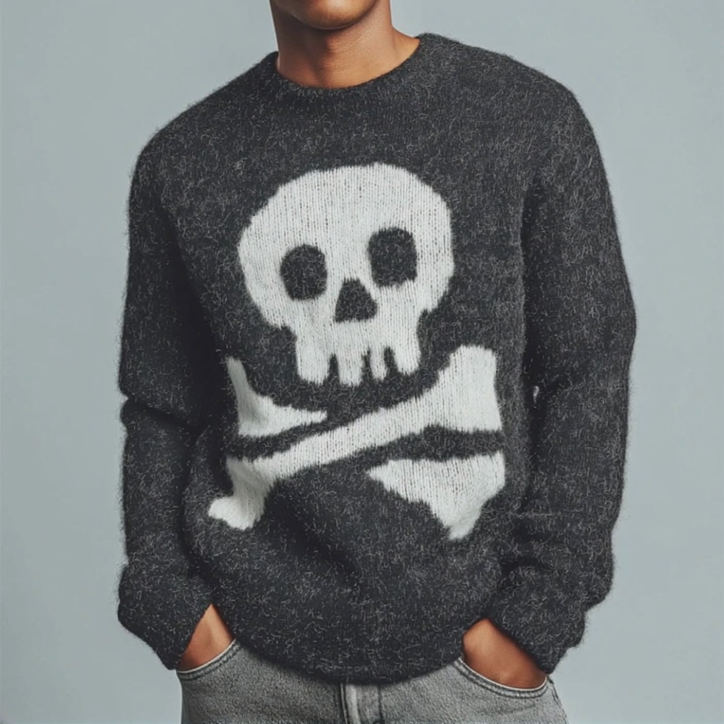 Men's Retro Casual Skull Knit Crew Neck Sweater MTA2883K4TO