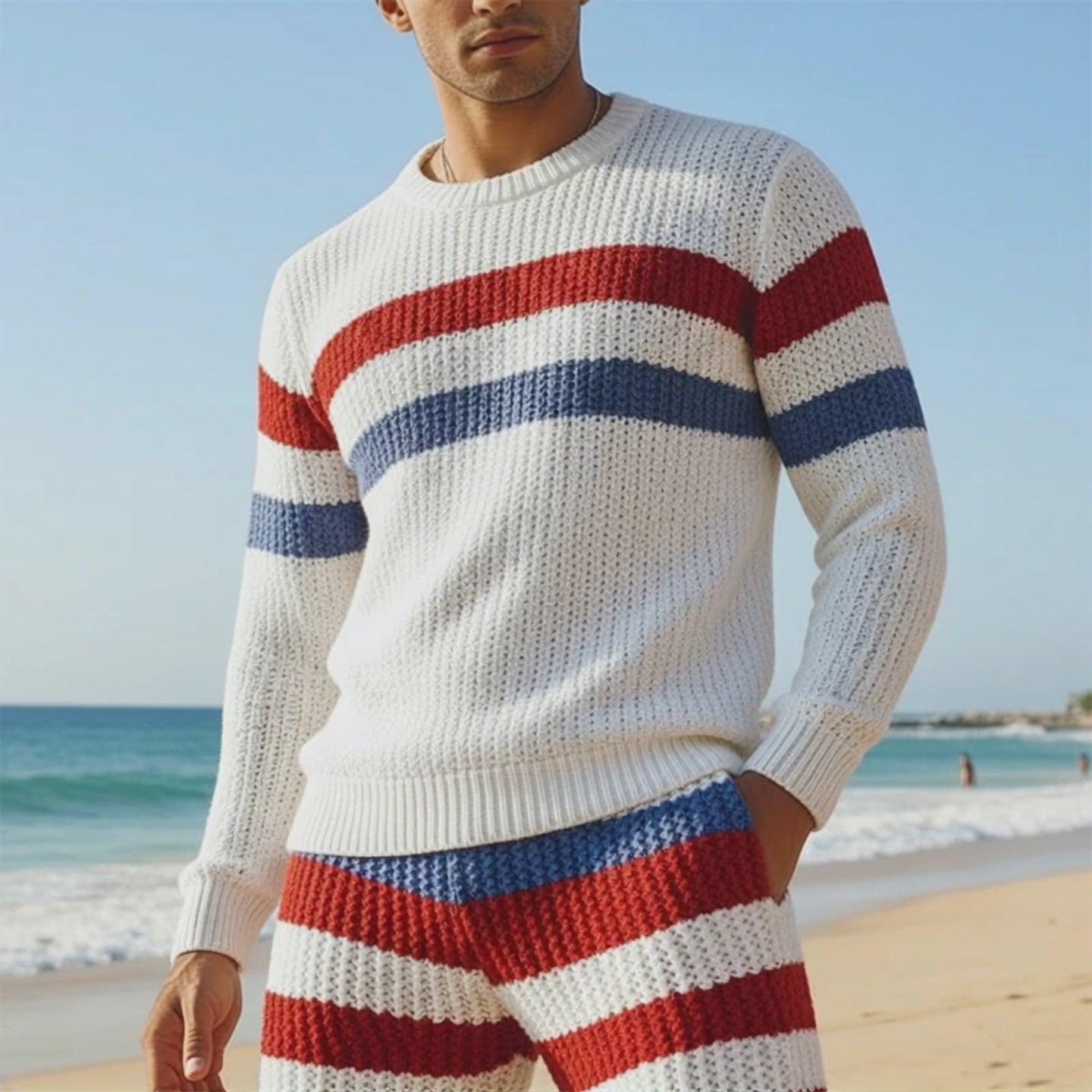Pull en tricot rayé à col ras du cou décontracté pour hommes 43751787F