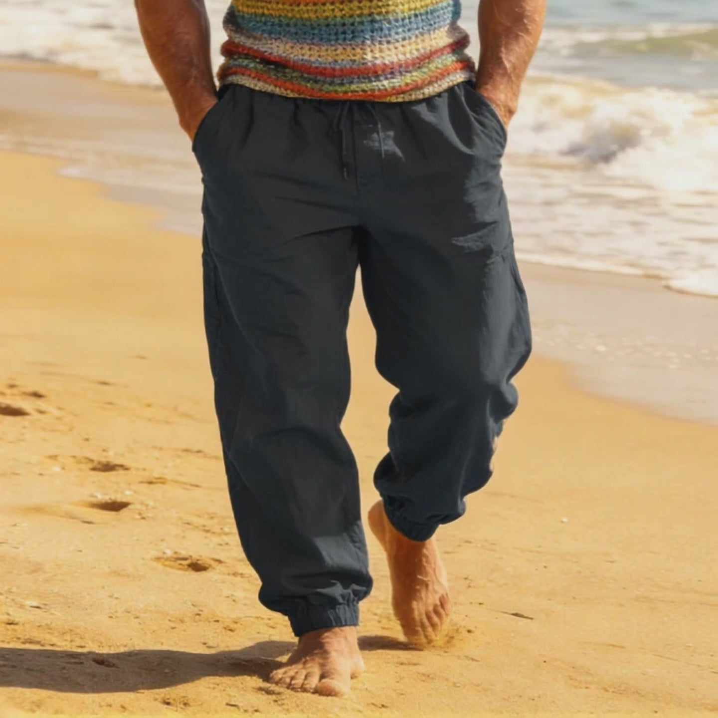 【24-hour shipping out】Men's Casual Cotton and Linen Striped Elastic Beach Pants MTA0386D6X