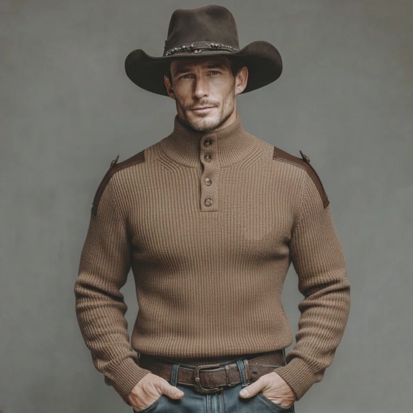 Men's Classic Western Tough Guy Style Deep V-neck Sweater MTA2717K8K