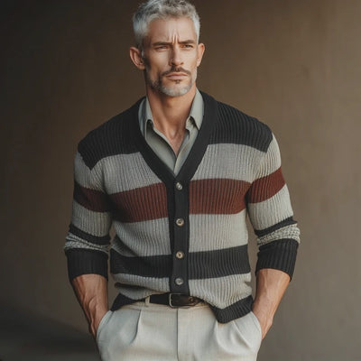 Men's Autumn Fashion Contrast Stripe Knitted Sweater Cardigan MTA1644I4P