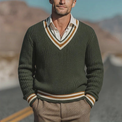 Men's Autumn Fashion Cotton Knitted Contrast Color V-Neck Sweater MTA1736I9P