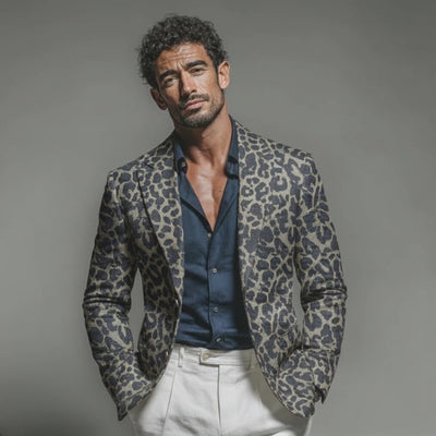 The Men’s Classic Casual Rugged Denim Jacquard Leopard Print Single-breasted Blazer pairs a bold animal-inspired pattern with the textured depth of denim jacquard. Designed for smart-casual to statement-making occasions, this blazer combines a contemporary single-breasted front with a rugged, durable fabric that ages with character. Built for city wear and social events, it offers versatile layering, standout detailing, and practical practicality for modern wardrobes.