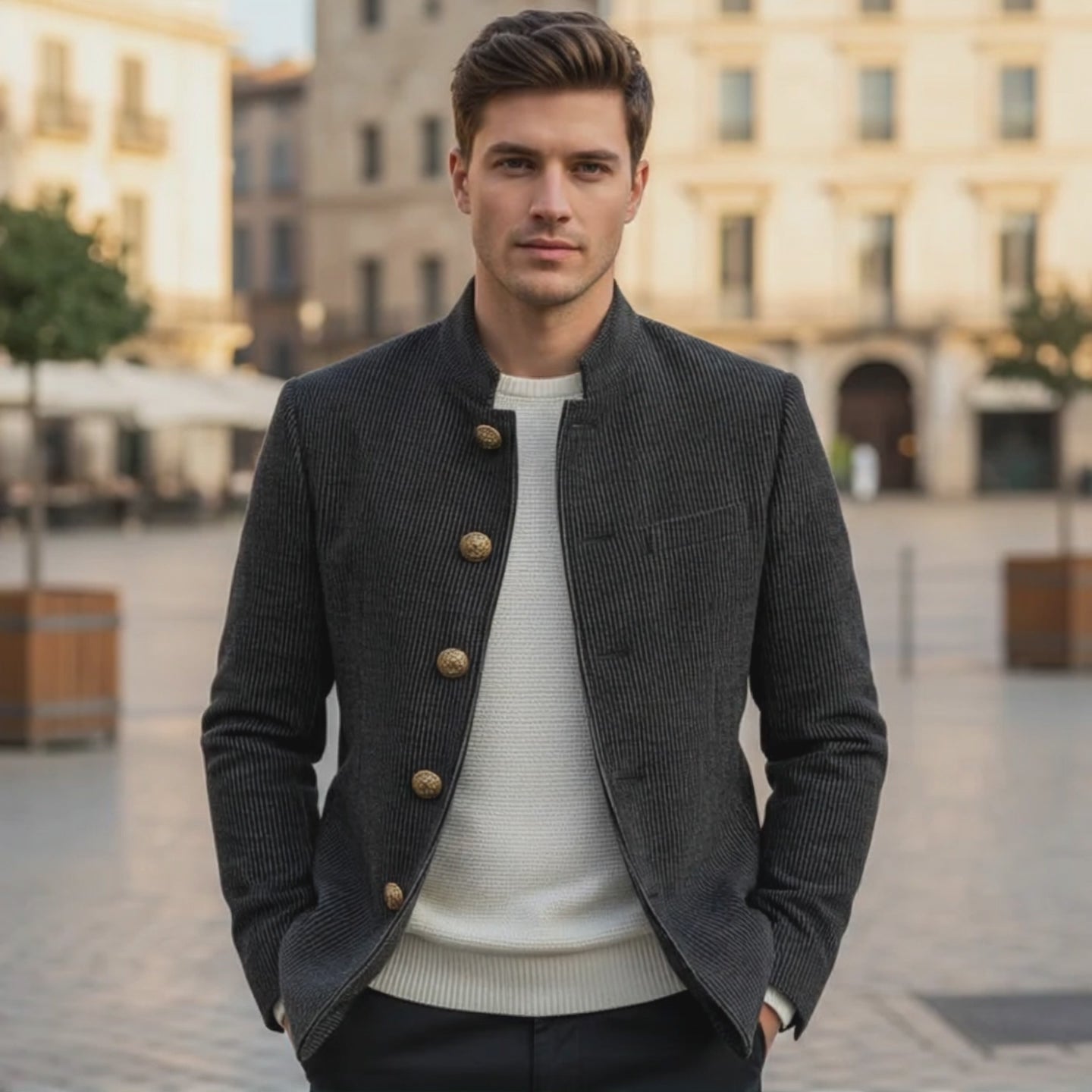 The Men's Classic Corduroy Stand Collar Jacket is a versatile wardrobe staple that blends traditional charm with modern design. Whether for a casual outing or a night out, this jacket ensures you step out in style and comfort.
