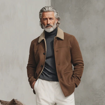 The Men’s Classic Light Business Fleece Lined and Collar Faux Suede Jacket blends refined business-casual styling with everyday comfort. Crafted with a soft faux suede exterior, a cozy fleece lining, and a crisp collar, this jacket delivers a polished silhouette that's versatile for commutes, meetings, and smart-casual occasions. Thoughtful details and durable construction make it a dependable layer for transitional seasons and cooler days.