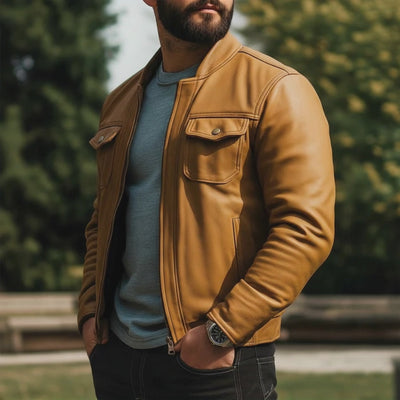 The Men's Classic Orange Zip-up PU Leather Motorcycle Jacket is a striking blend of style and function, designed for those who appreciate the boldness of the open road. Crafted from high-quality PU leather, this jacket offers the durability and aesthetic appeal of genuine leather, while being an environmentally conscious choice. Its vibrant orange color makes a powerful statement and ensures you stand out in any crowd.