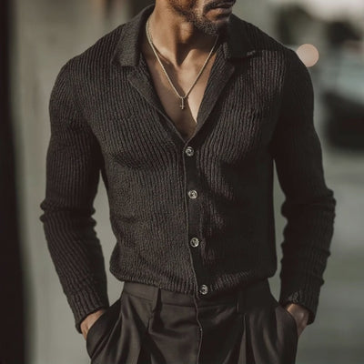 This Men's Retro Casual Cardigan combines vintage style with modern comfort. Skillfully crafted from high-quality knitted fabric, this cardigan offers a sophisticated solid color design. The button-down front and lapel collar add a refined touch, perfect for stylish layering.