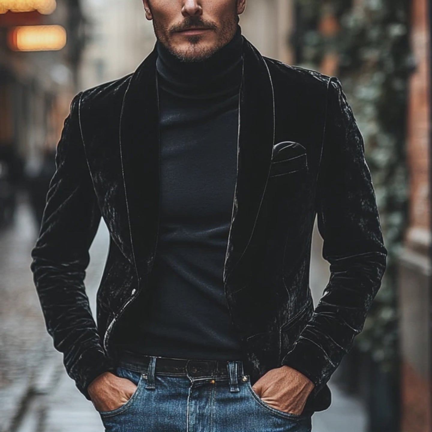 For a classic look, pair this blazer with a crisp white shirt and tailored black trousers. Add a silk tie and polished leather shoes for a complete, elegant appearance. Alternatively, for a more casual yet sophisticated look, combine with a turtleneck and dark denim jeans.Conclusion