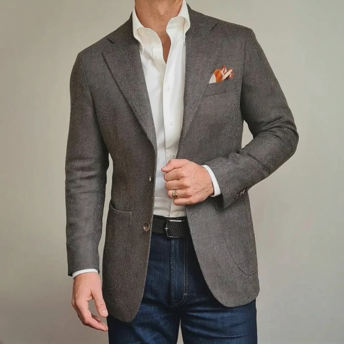 Parfait pour les événements formels, les réunions d'affaires ou pour rehausser votre style quotidien, ce blazer à chevrons vintage est un ajout polyvalent à la garde-robe de tout gentleman.