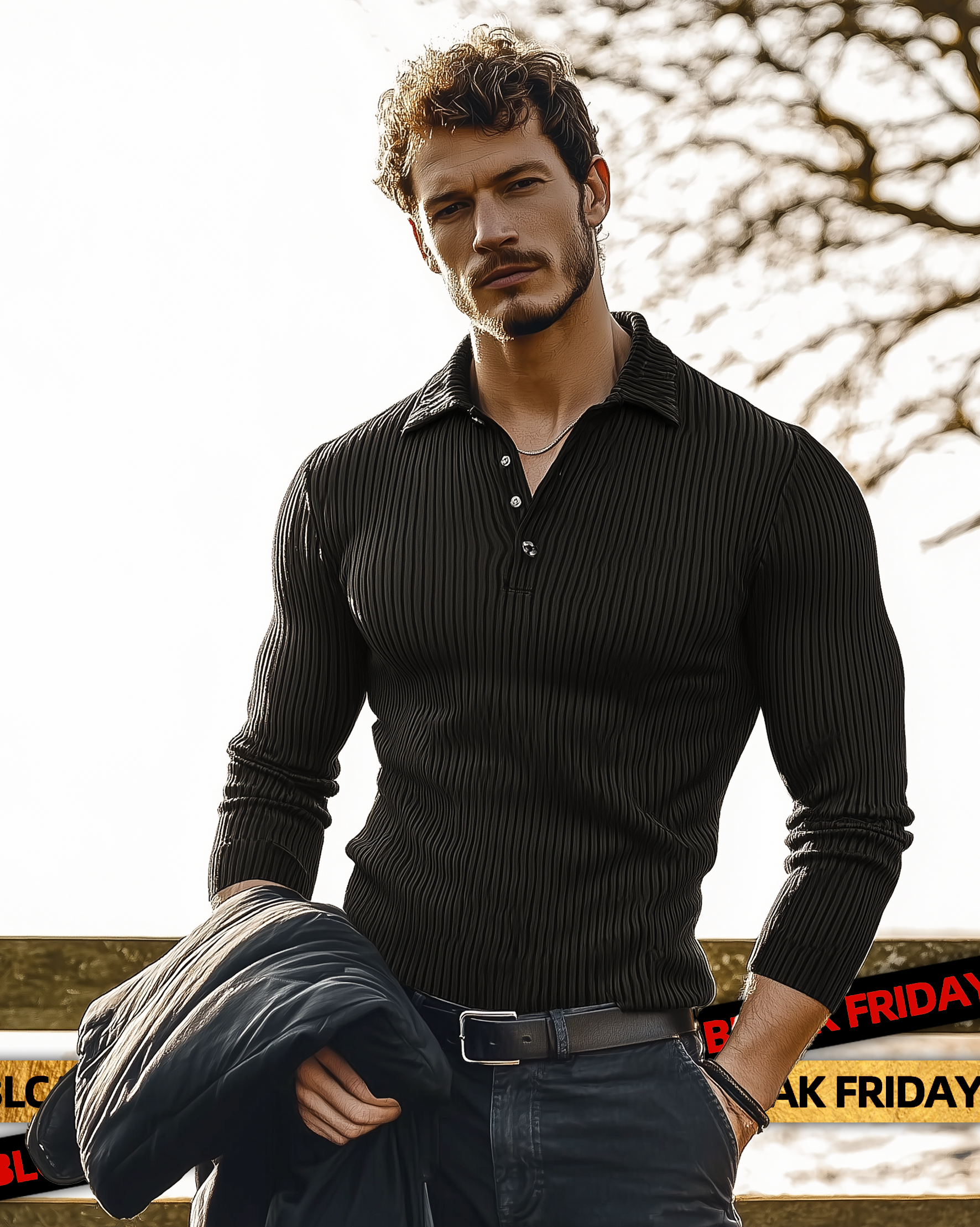Men's Striped Textured Basic Elastic Long-sleeved POLO Shirt MTA1139J2X