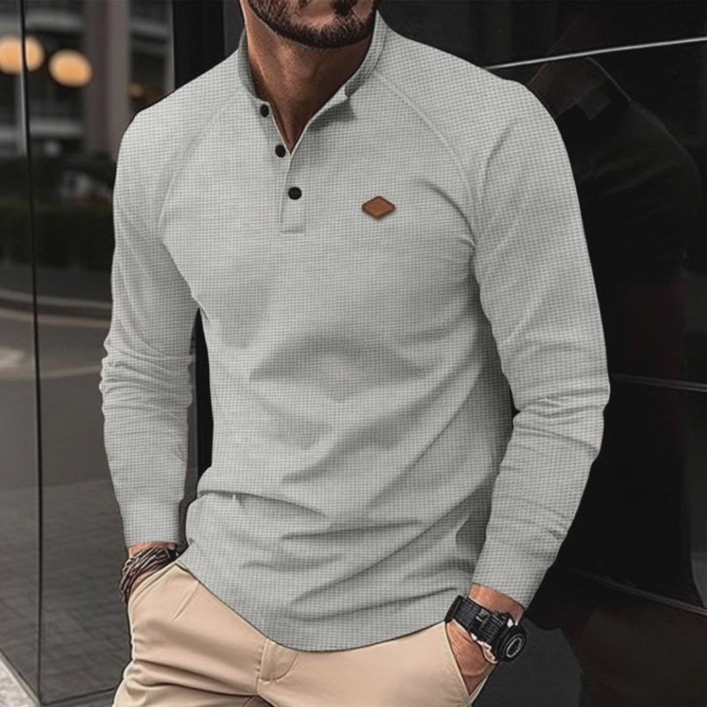 T-shirt casual da uomo con colletto a nido d'ape e maniche lunghe raglan 51518862Y