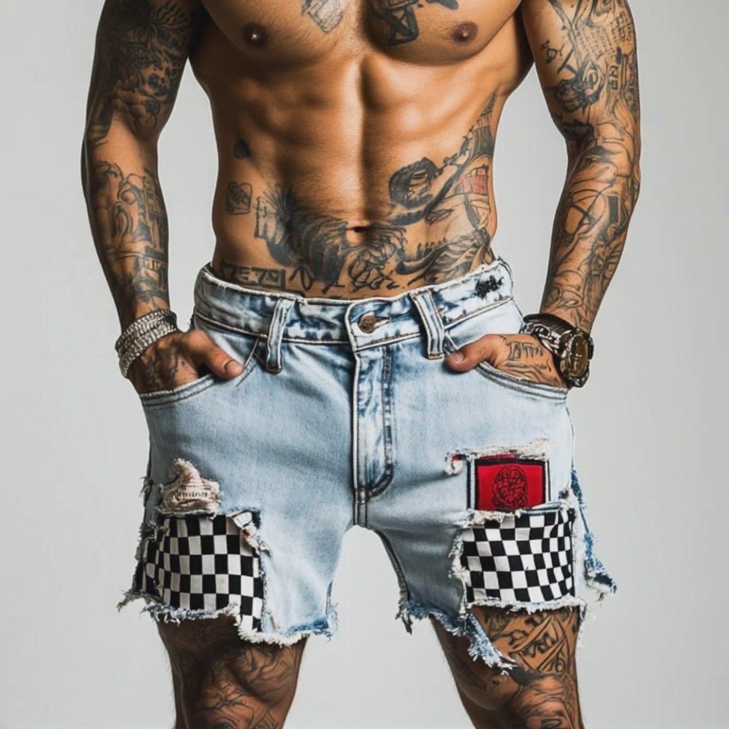 Men's Ripped Check Denim Shorts MTA1296F1X