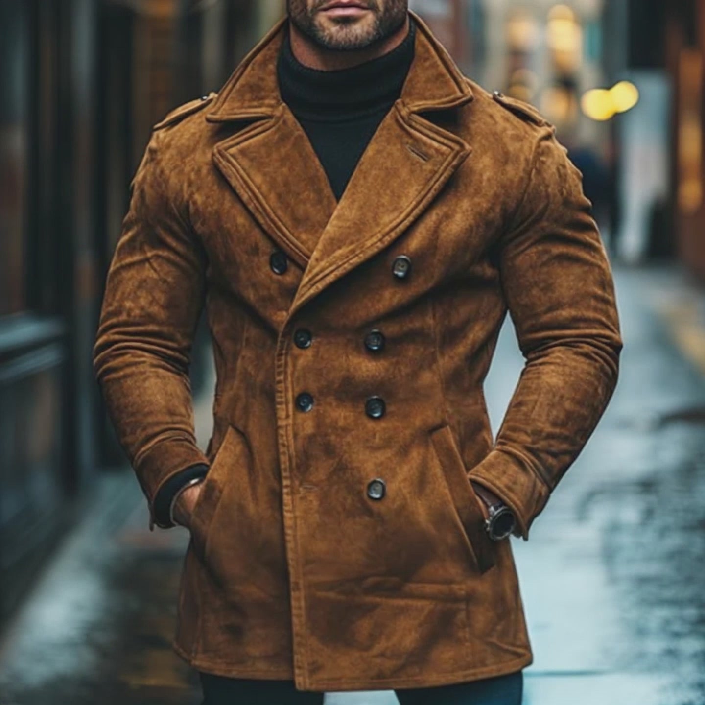 Giacca corta doppiopetto in pelle scamosciata casual vintage da uomo 60639537TO