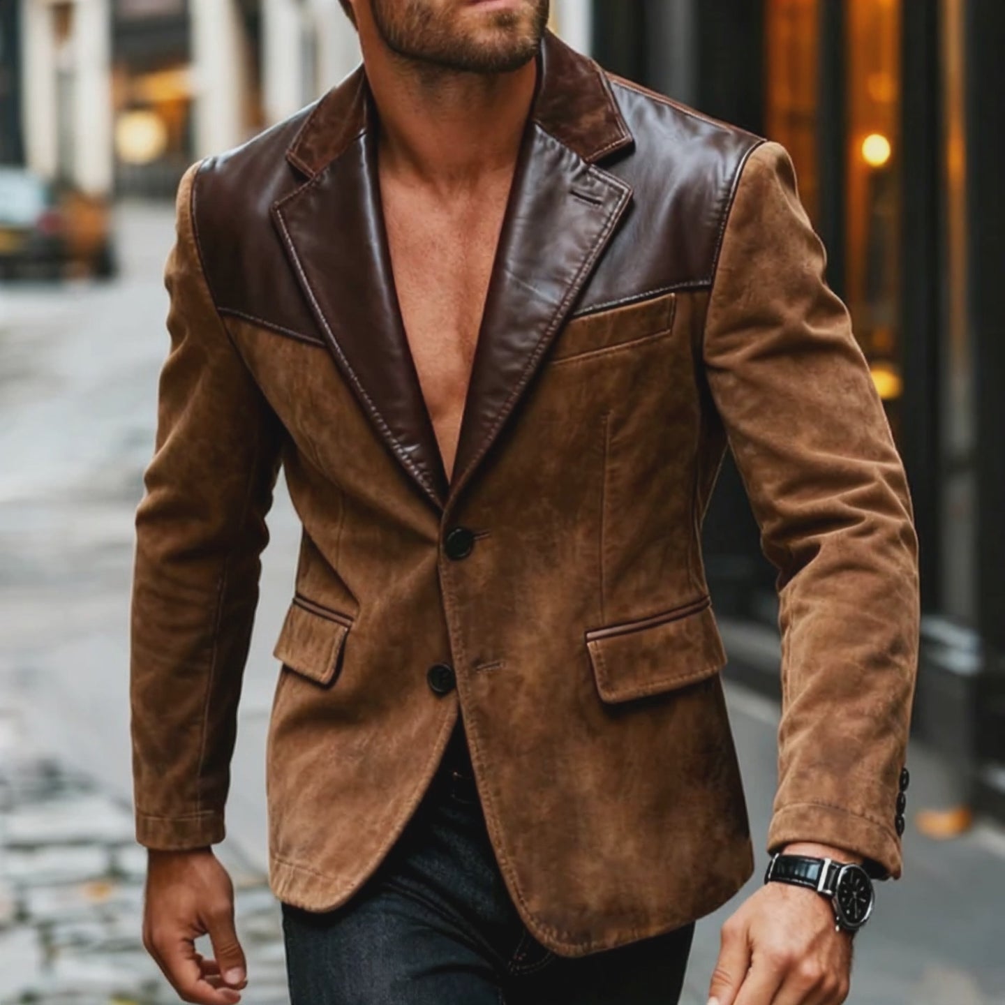 Men's Retro Casual Faux Suede Patchwork PU Blazer MTA0520K3TO