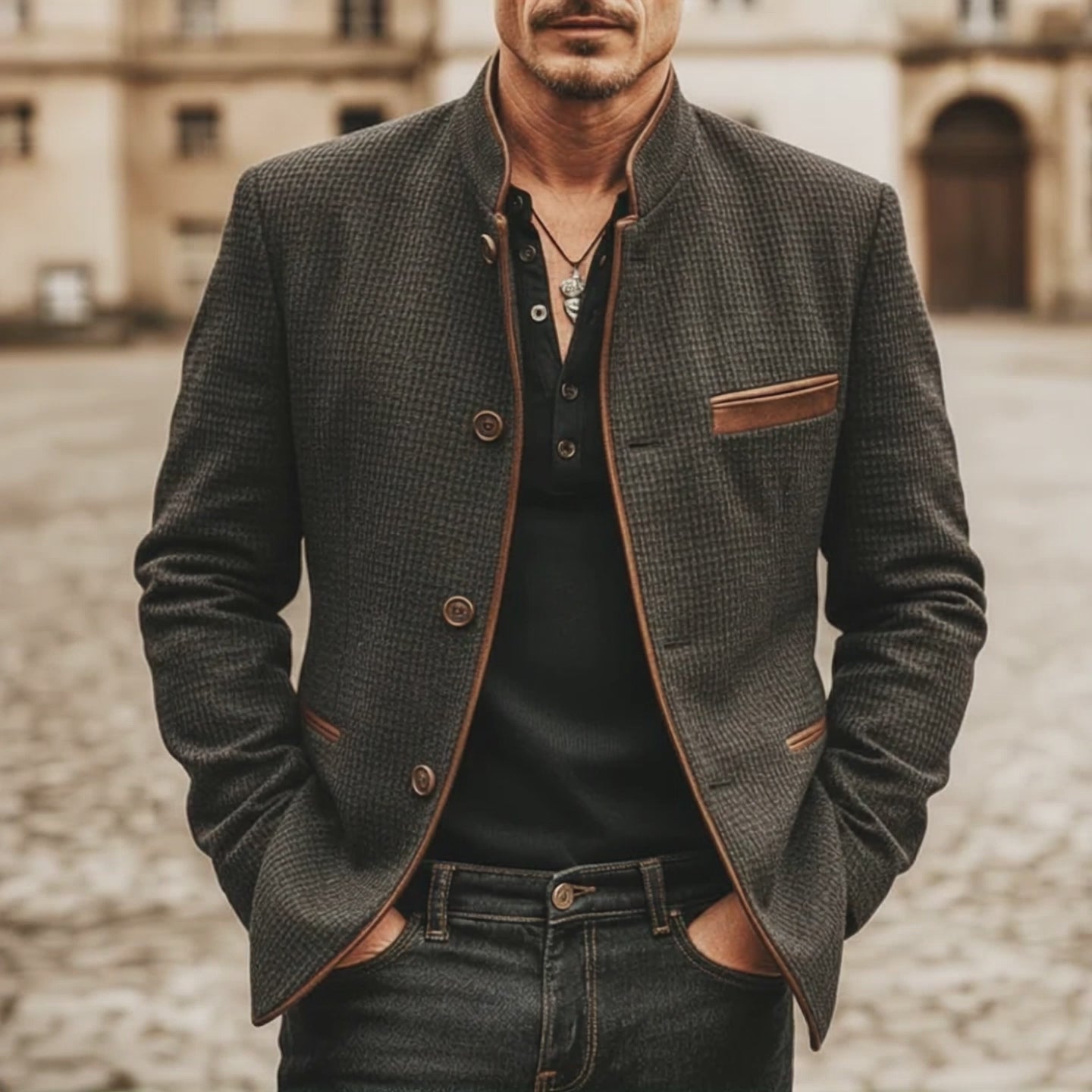 Men's Retro Casual Tweed Plaid Stand Collar Jacket MTA1165K3TO