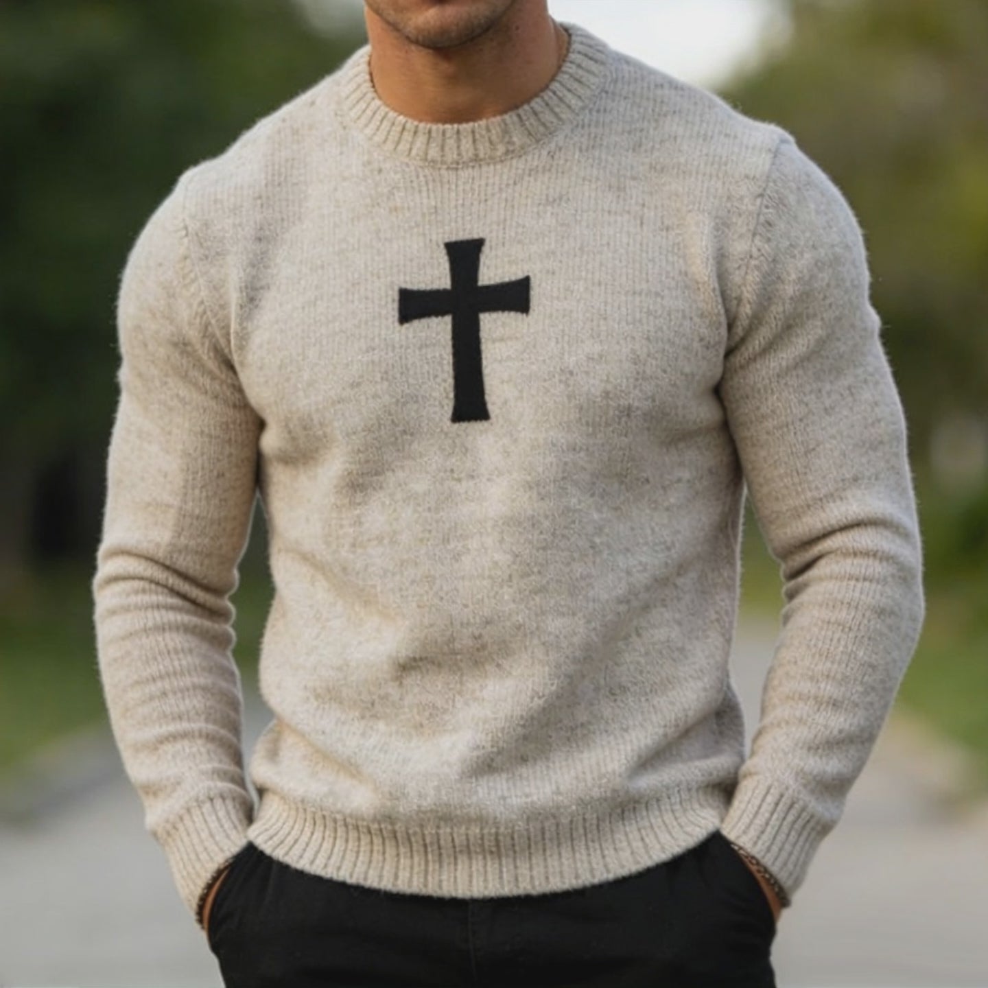 Men's Retro Casual Cross Knit Crew Neck Sweater MTA1604L6TO
