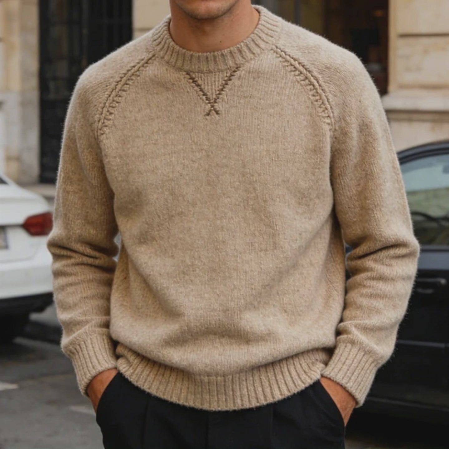 Men's Vintage Casual Solid Color Knitted Crew Neck Sweater MTA1688L6TO