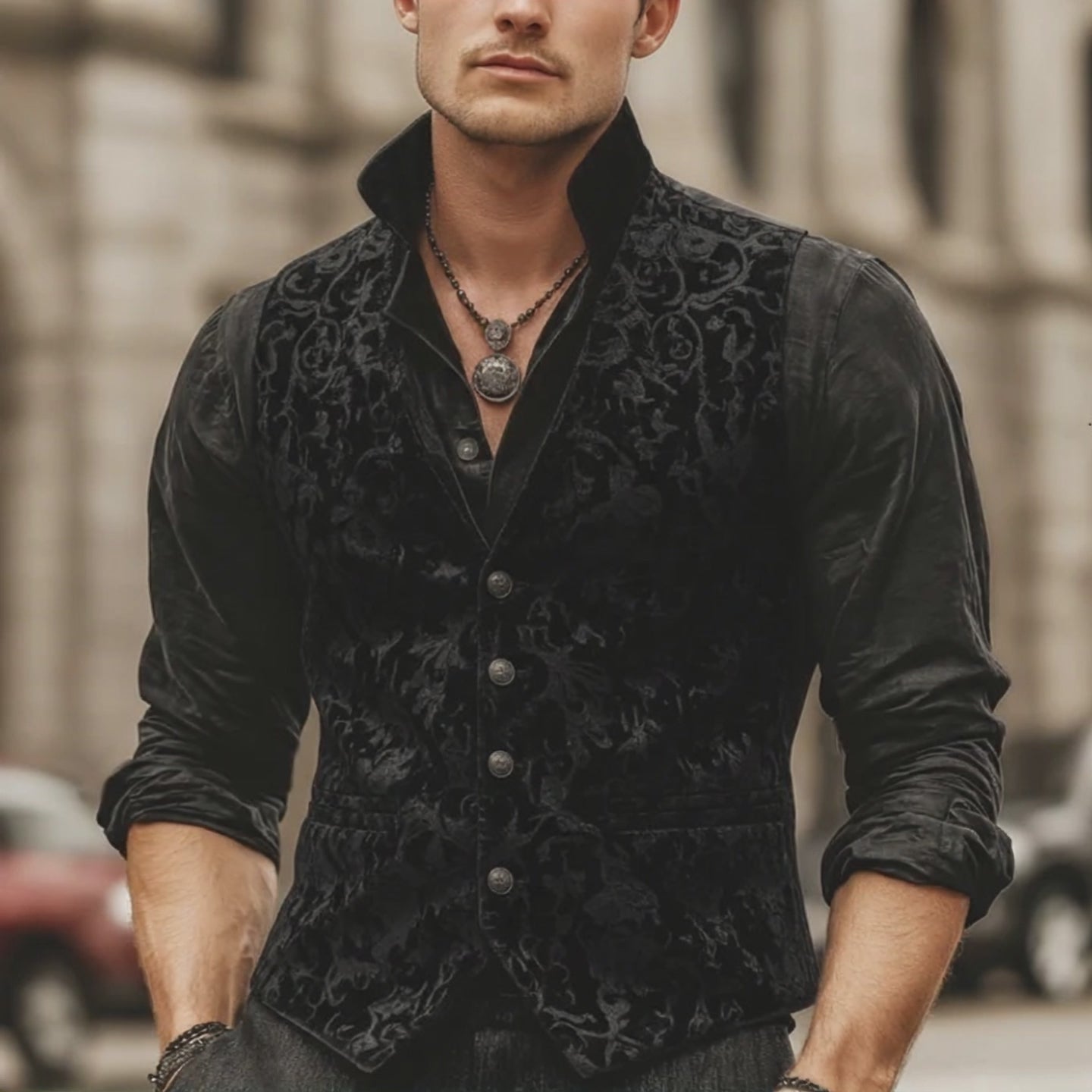Men's Classic Embroidered Velvet Notched Lapel Slim-fit Vest MTA1651L6U