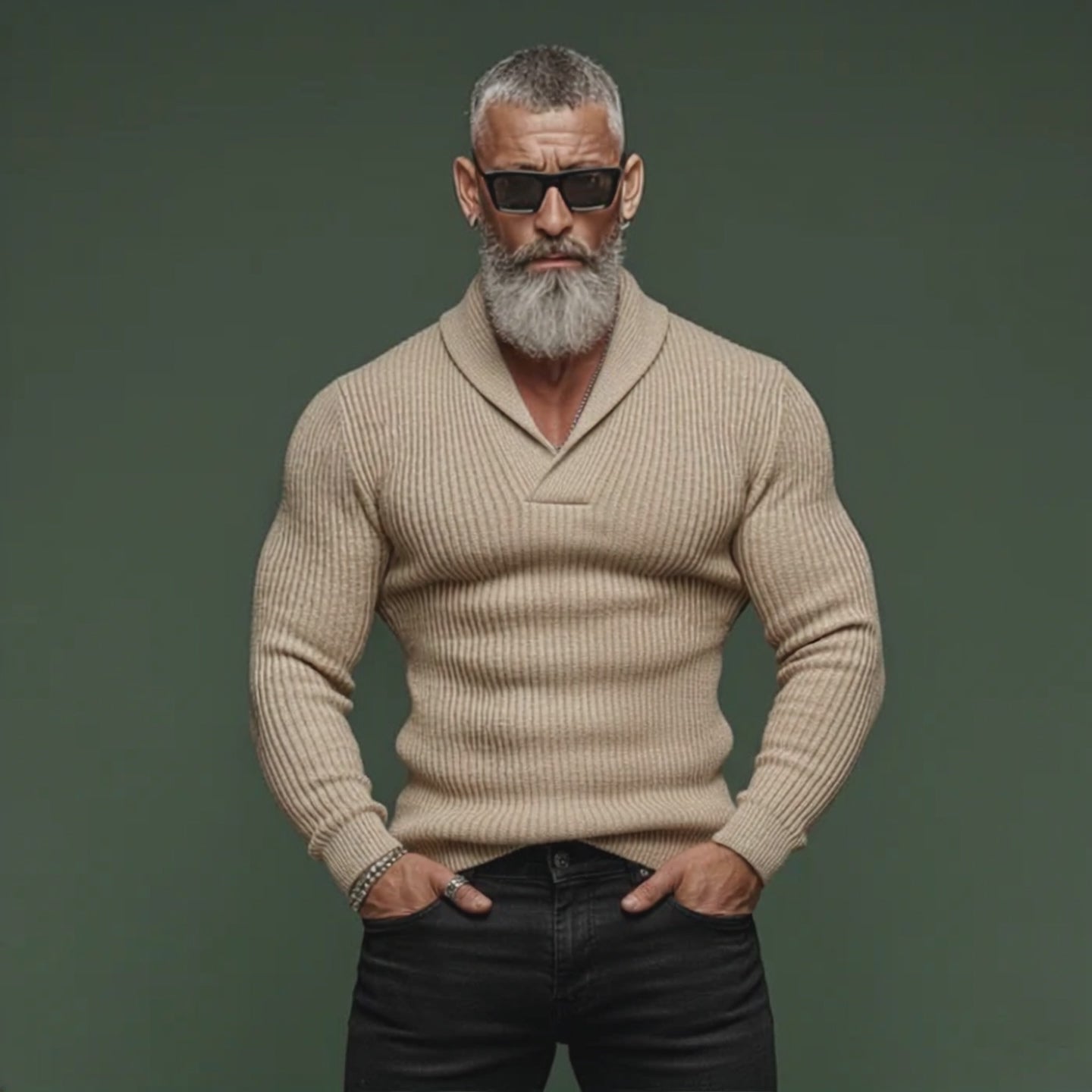 Men's Classic Retro Shawl V-neck Slim Fit Sweater MTA2834K9K