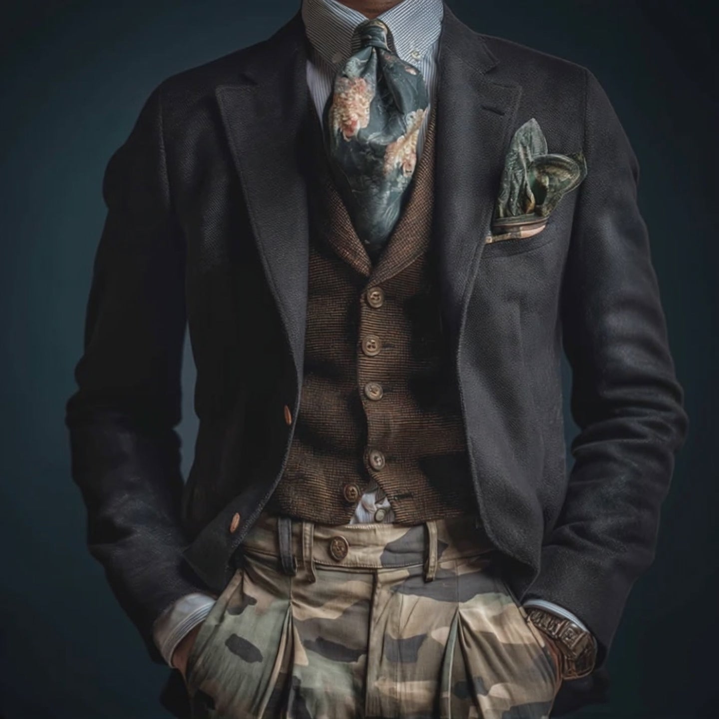 Men's Vintage Corduroy Lapel Colorblock Single-Breasted Jacket MTA2252I6X