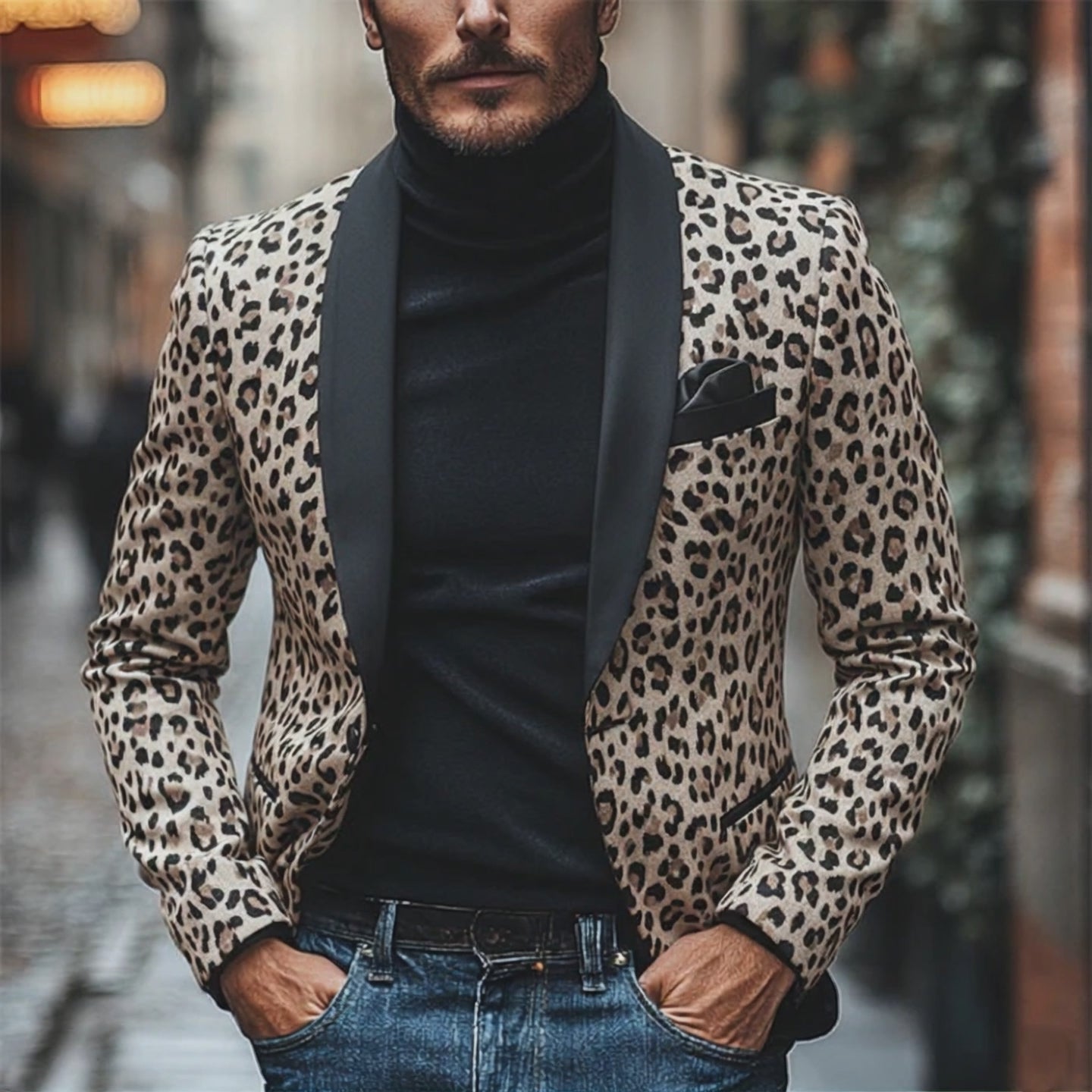 Men's Vintage Leopard Print Contrast Blazer MTA2660I2X