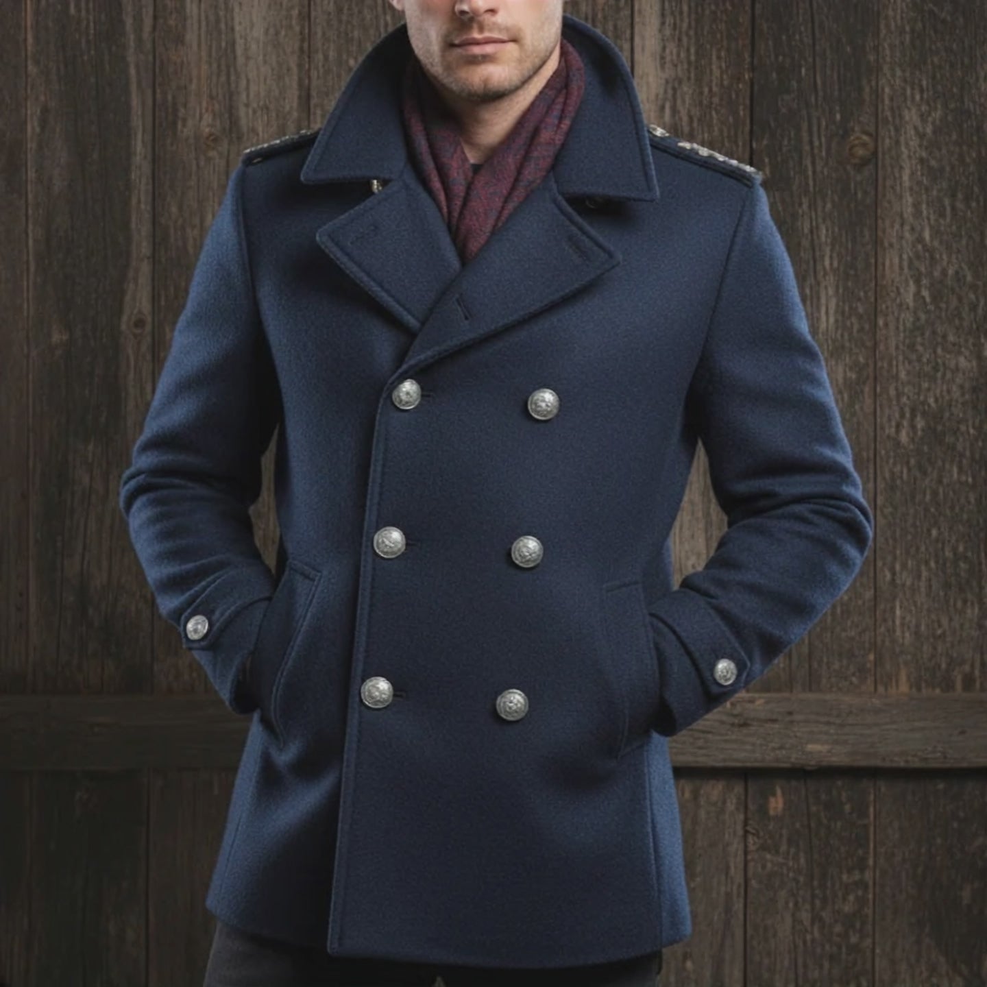 Men's Winter Retro Blue Double-breasted Faux Wool Double-breasted Coat MTA2985I0P