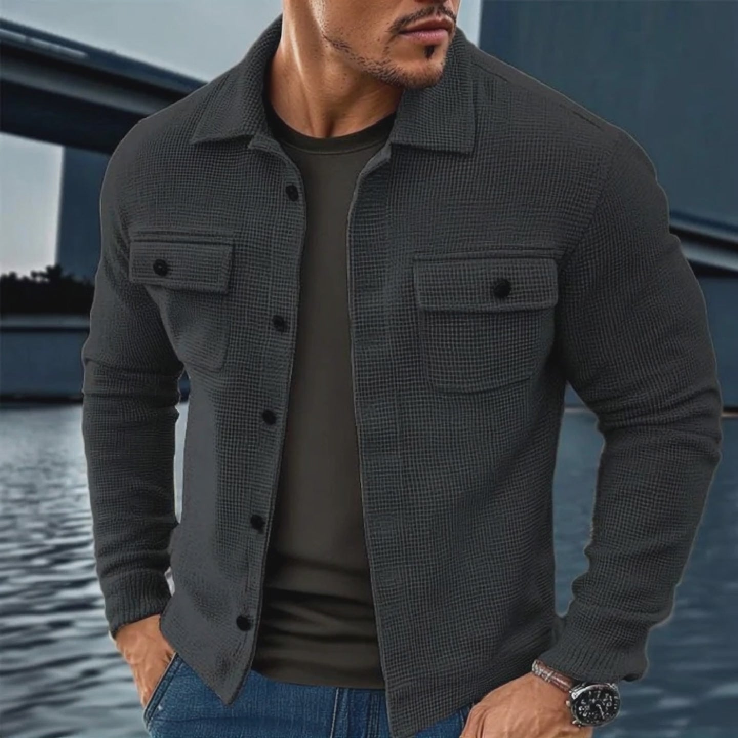Giacca multitasche tinta unita con risvolto da uomo 06596075X
