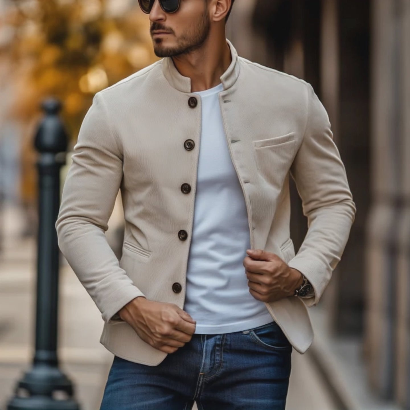 Men's Vintage Elegant Corduroy Colorblock Trim Notch Lapel Single-breasted Slim-fit Blazer MTA0465H6M