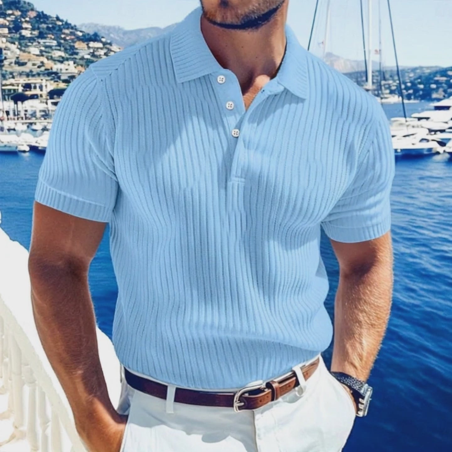 Polo casual a maniche corte con risvolto sottile da uomo 22236281Z