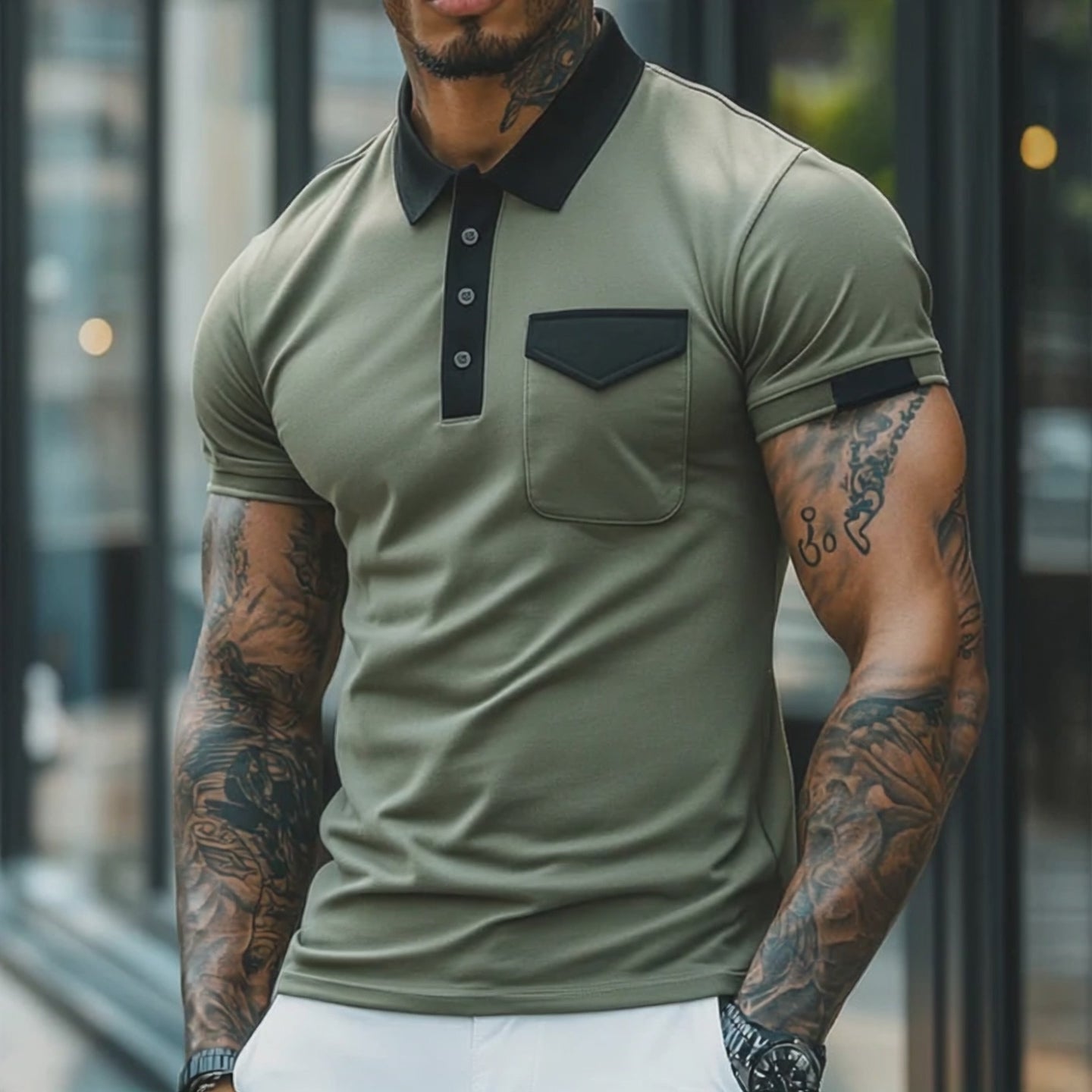 Men's Fashion Lace Lapel Short Sleeve Casual Polo Shirt MTA1296E2Z
