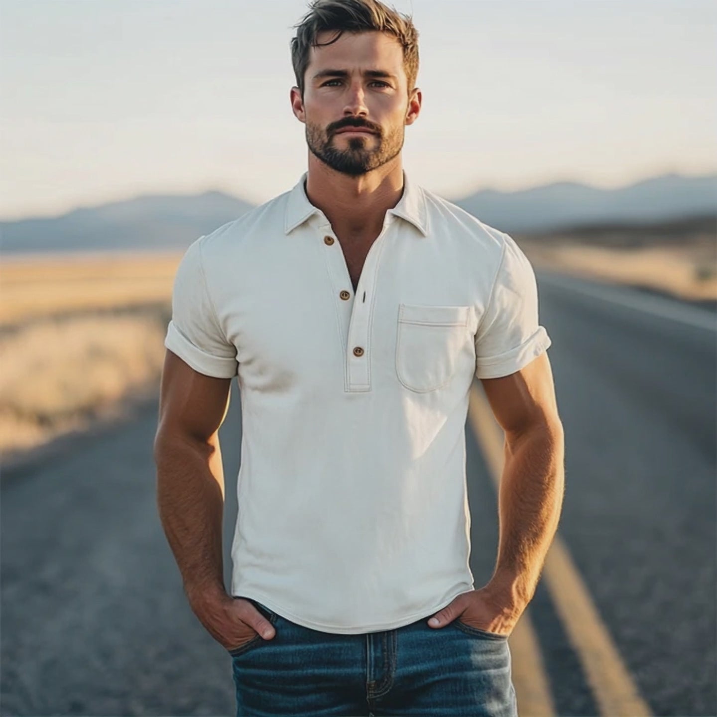 Men's Spring Fashion Retro Western Style Suede Short Sleeve Polo Shirt MTA0203D6K