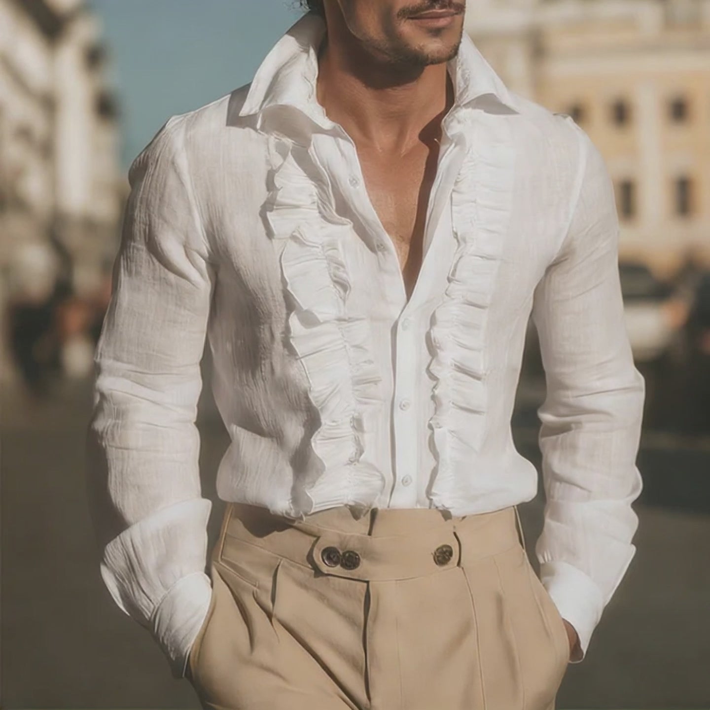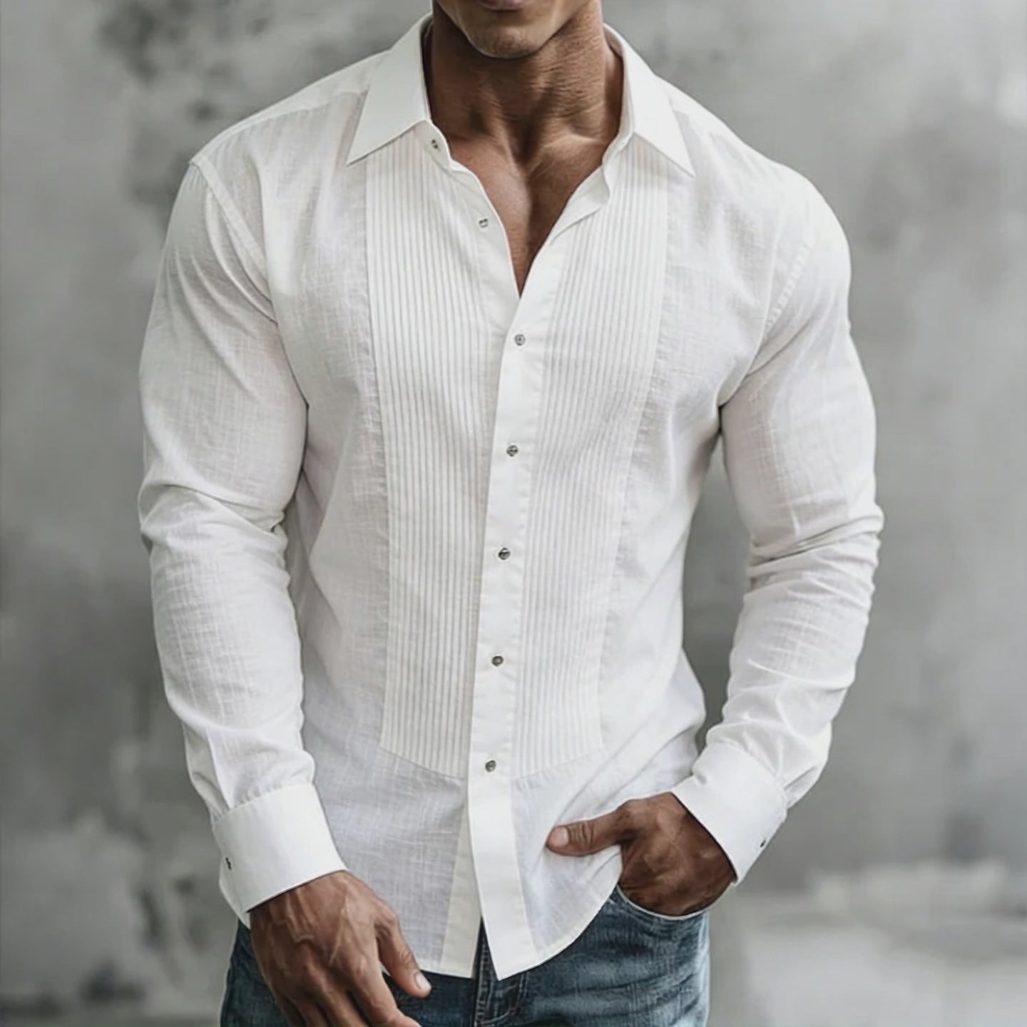 Men's Retro Casual Pleated Cotton Linen Lapel Long-Sleeve Shirt MTZ2222A9TO