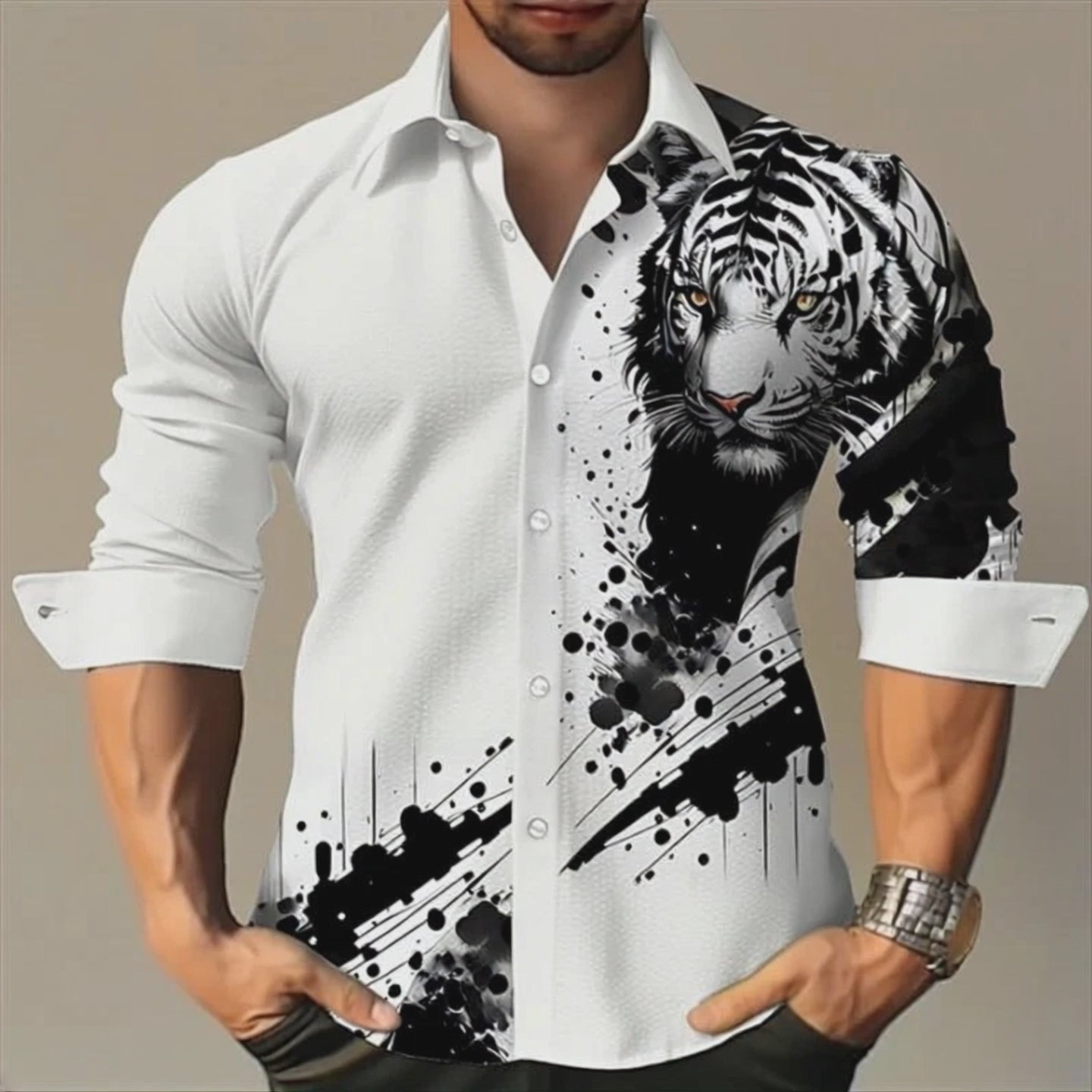 Camicia da uomo con stampa animalier a maniche lunghe e risvolto 50194514X