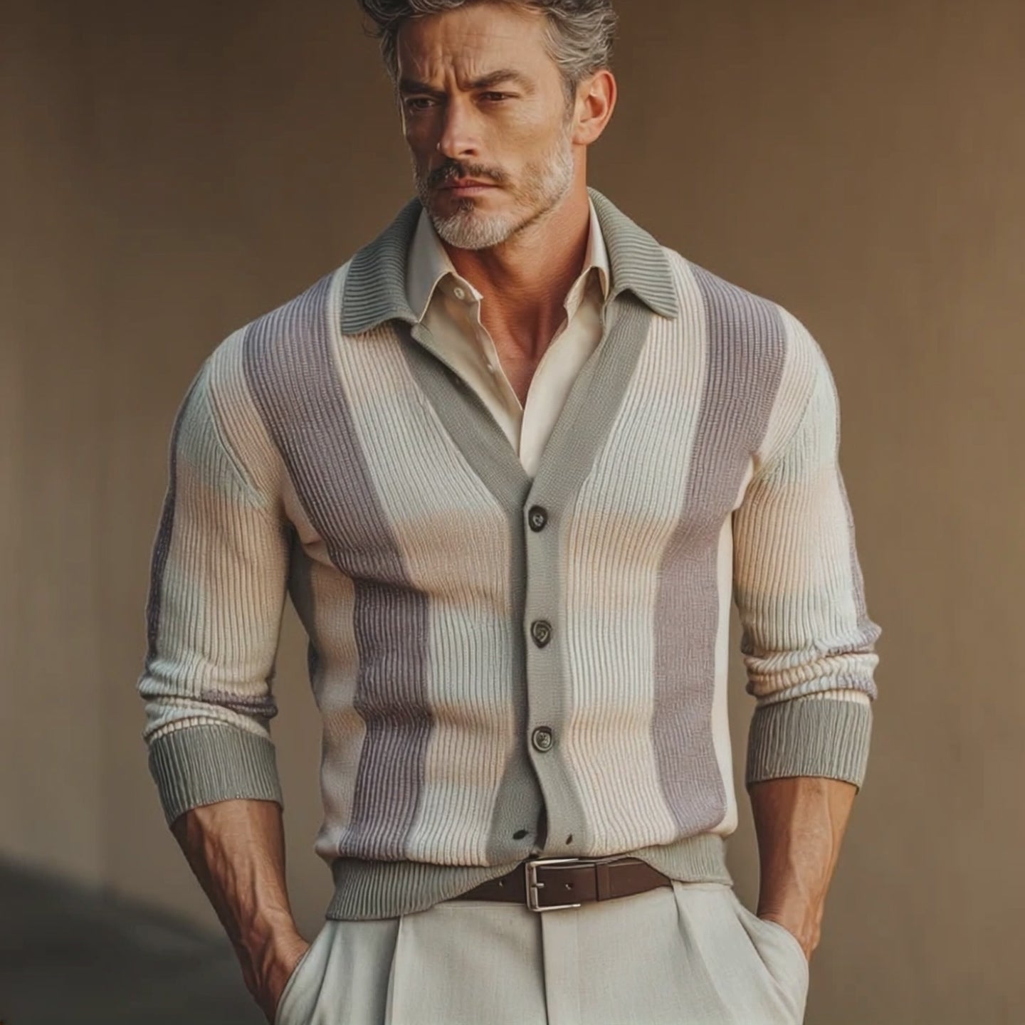 Men's Autumn Fashion Contrast Color Vertical Stripes Knitted Sweater Cardigan MTA1679I0P