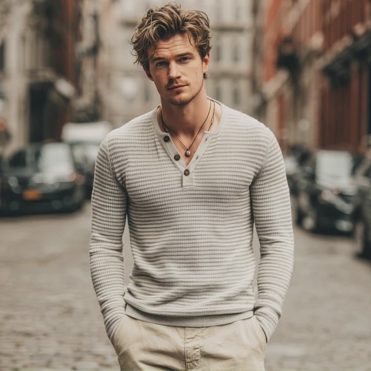 Men's Business Classic Jacquard Button Collar Slim Sweater MTA1106J2U