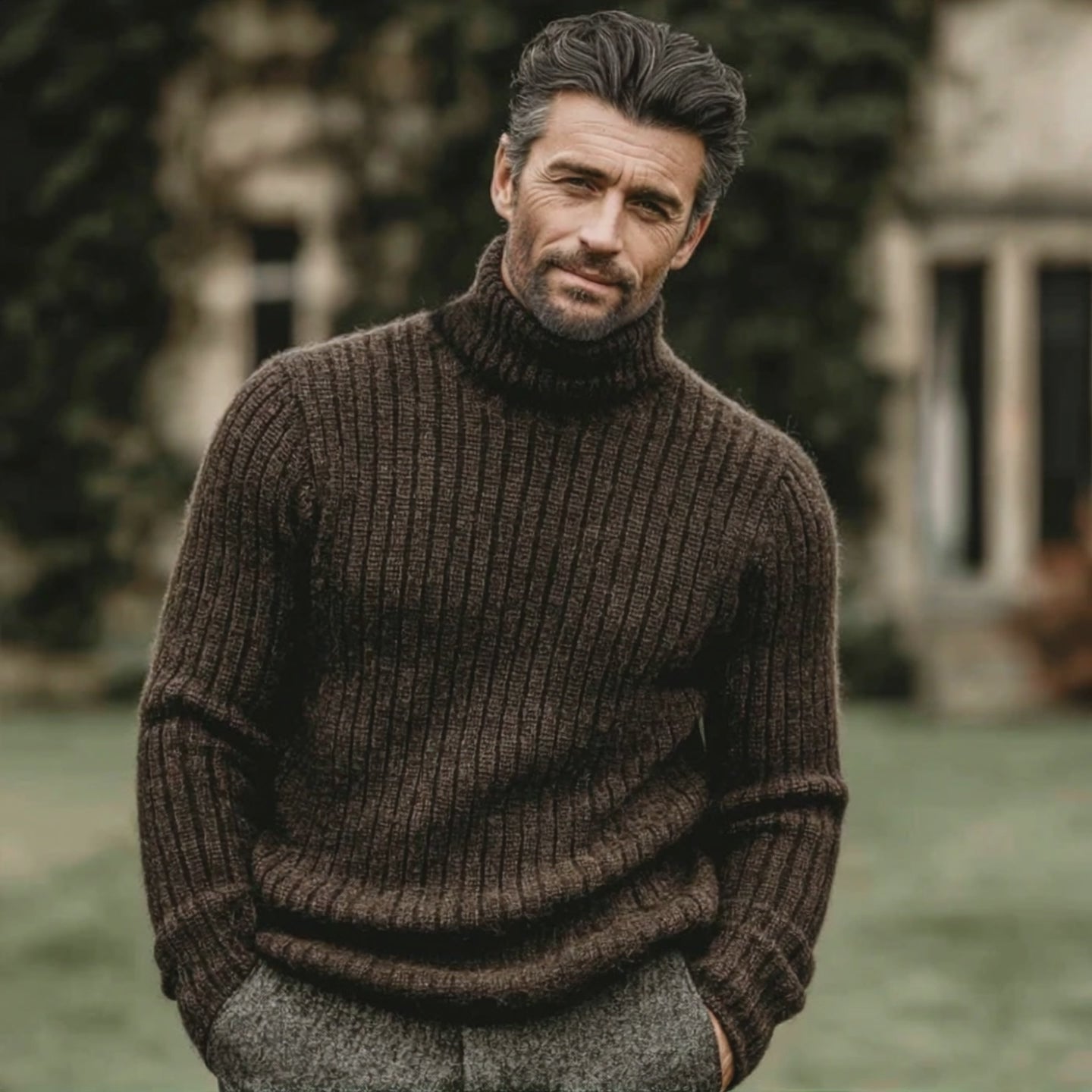 Men's Classic Vintage Dark Brown Turtleneck Ribbed Sweater MTA2750K1U