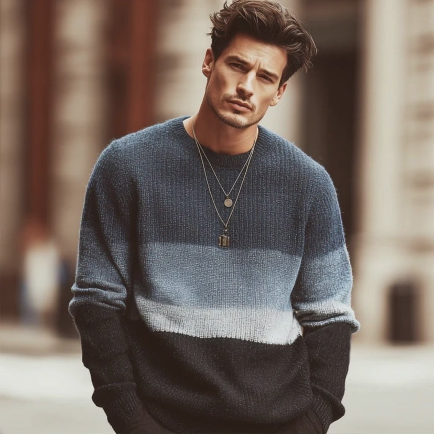 Men's Urban Tiger Stripe Crew Neck Knit Sweater MTA0419L1U