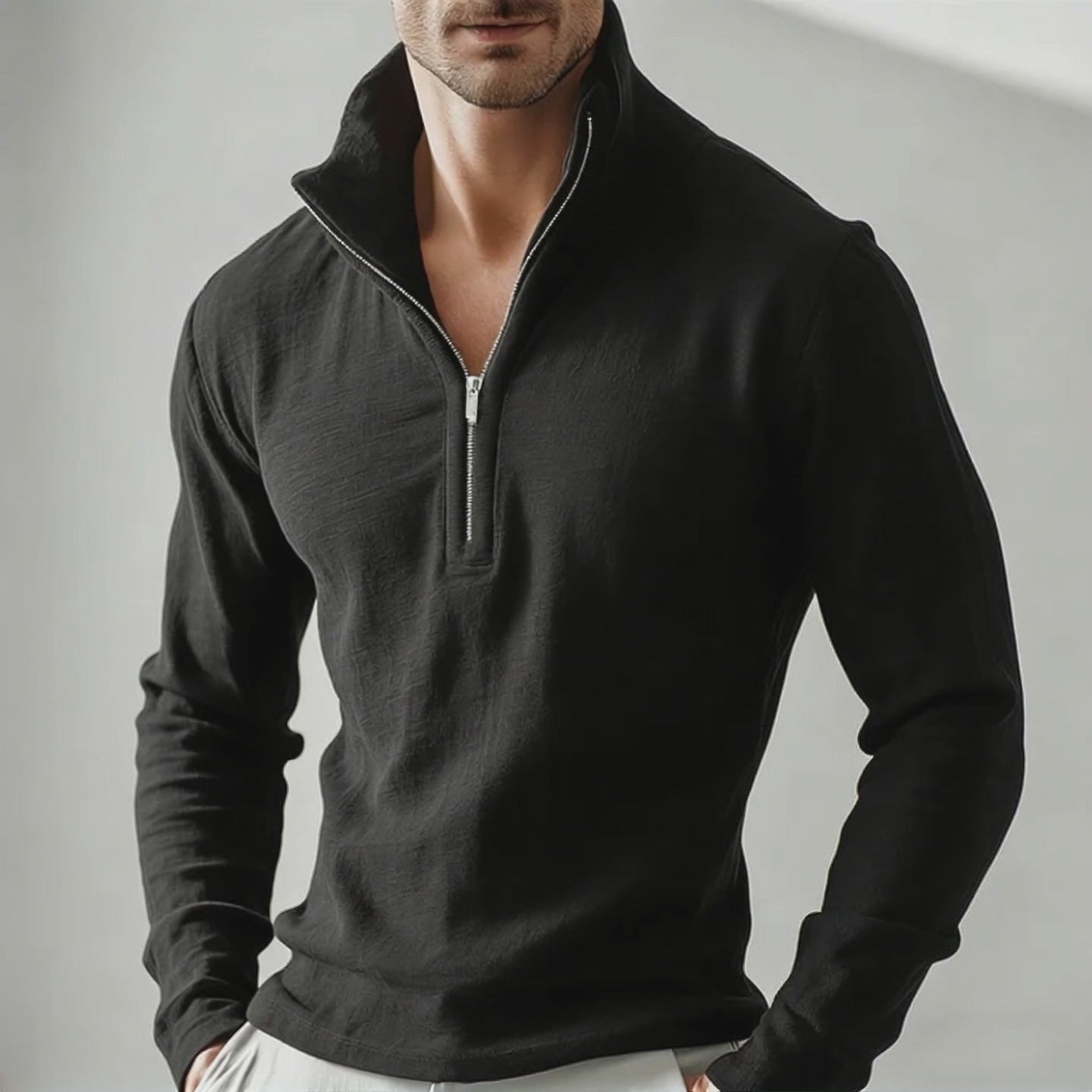 Men's Retro Casual Zipper Stand Collar Long Sleeve T-shirt MTZ1454A3TO