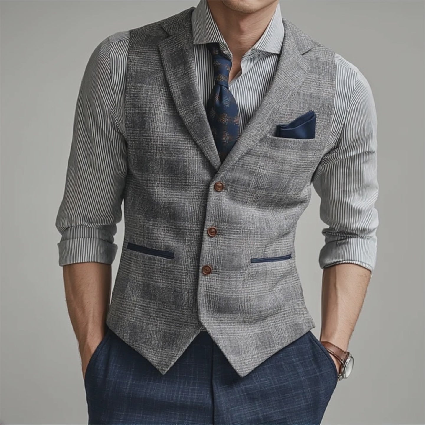 Men's Retro Casual Plaid Lapel Vest MTA2295K0TO