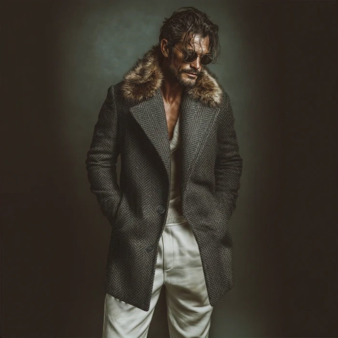 The Men's Classic Casual Fur Collar Faux Herringbone Wool Single-breasted Coat delivers a refined, versatile outerwear solution that blends timeless patterning with modern warmth. With its premium faux wool, luxurious fur collar, and practical details, it serves well for professional settings, social events, and everyday wear. Enhance your outerwear collection with this enduring coat that harmonizes style, comfort, and quality.