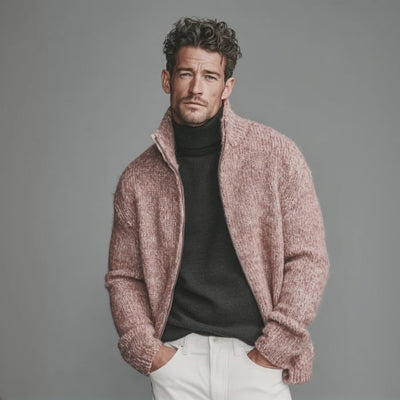 Men's Classic Casual Pink Stand Collar Zipper Knitted Cardigan