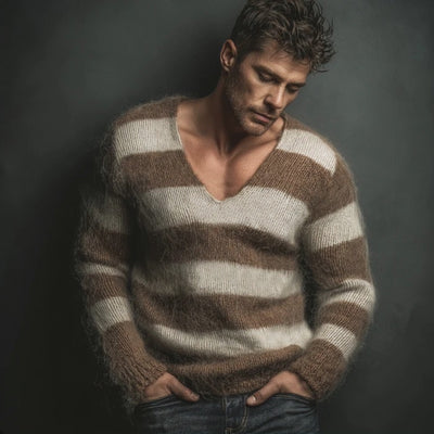 Embrace classic style with this Men's Color-blocked Striped V-neck Knit Sweater. Designed for comfort and made with meticulous craftsmanship, this sweater is perfect for the modern man who values both fashion and function.