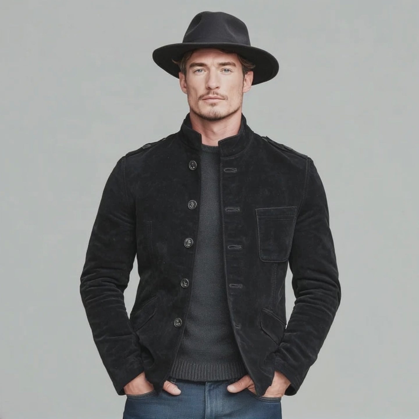 The Men’s Classic Retro Western Style Stand-up Collar Multi-pocket Faux Suede Jacket combines rugged Western character with modern fabrication. Designed as a versatile outer layer, it features a sharp stand-up collar, textured faux suede body, and practical multi-pocket detailing. Lightweight enough for year-round wear, it adds frontier-inspired attitude to both casual and smart-casual ensembles.