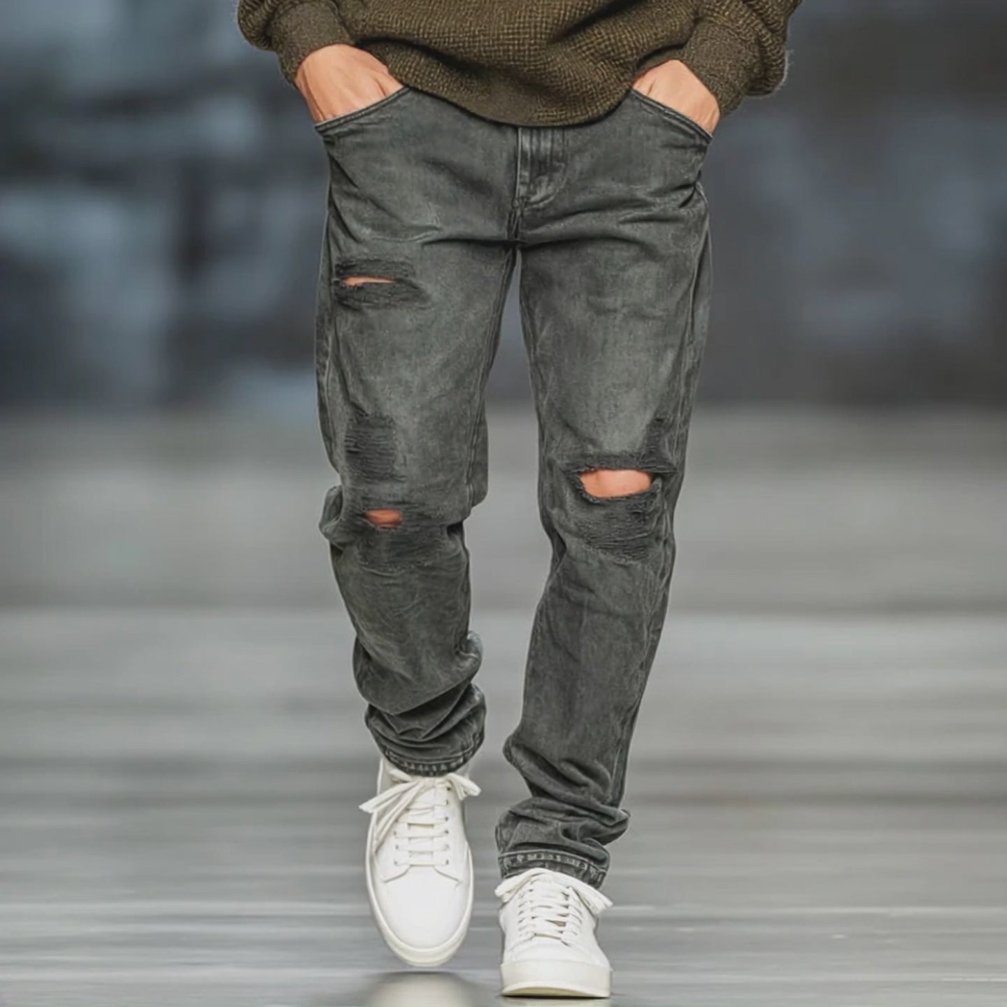 Design: Classic straight-leg fit with modern ripped details for a trendy look.