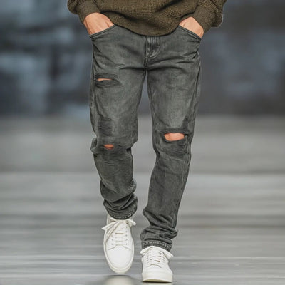 Men's Classic Straight-leg Ripped Jeans