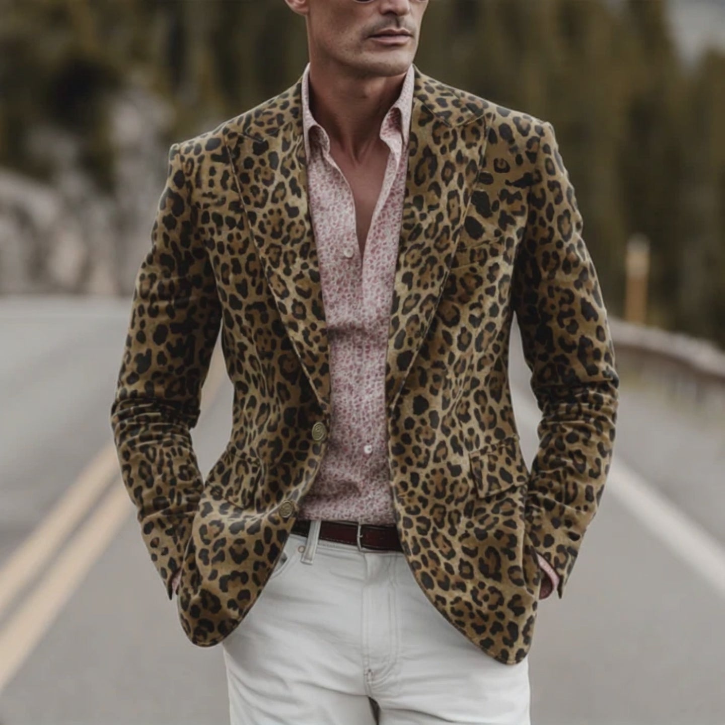Product Name:Men's Classic Western Vintage Leopard Faux Suede Single-Breasted Slim-Fit Blazer