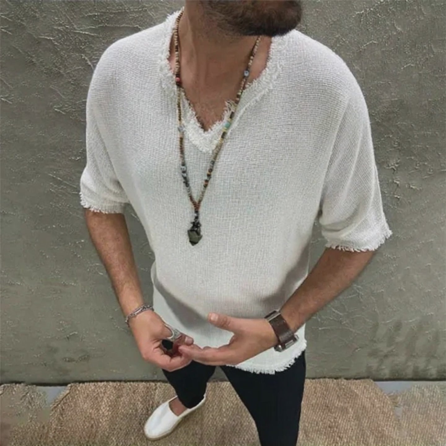 T-shirt da uomo in cotone e lino con scollo a V e maniche corte 49253378X