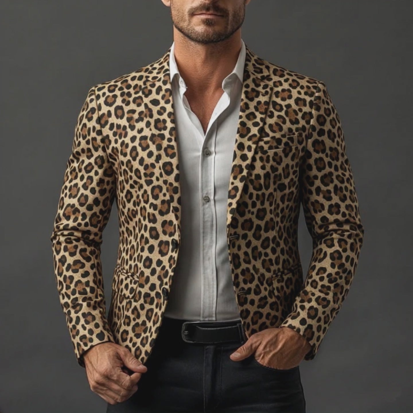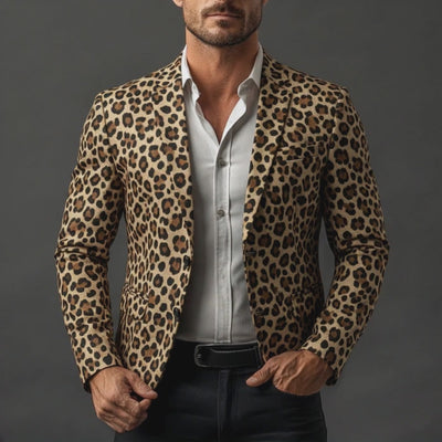 The Men’s Fashionable And Unique Leopard Print Faux Suede Single-breasted Blazer blends bold animal-inspired styling with the refined feel of faux suede. Designed for smart-casual to semi-formal occasions, this blazer features a single-breasted front for a clean, versatile silhouette, a distinctive leopard print for standout character, and a tailored yet comfortable fit that flatters the modern silhouette. Built for daily wear and special nights out, it pairs easily with dress shirts, knits, or denim for versatile styling.