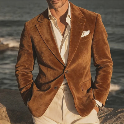 Introducing the Men's Retro Casual Faux Suede Blazer, a sophisticated and versatile addition to any modern man's wardrobe. Crafted with attention to detail, this blazer showcases a blend of retro charm and contemporary style, ideal for casual outings, semi-formal events, and everything in between.
